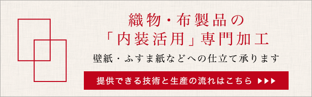 京都府内及びその周辺地域で生産された織物で、襖、壁、天井、障子、屏風等に加飾された内装材料です。全国シェアの約8割を占める地域に根付いた産業です。
